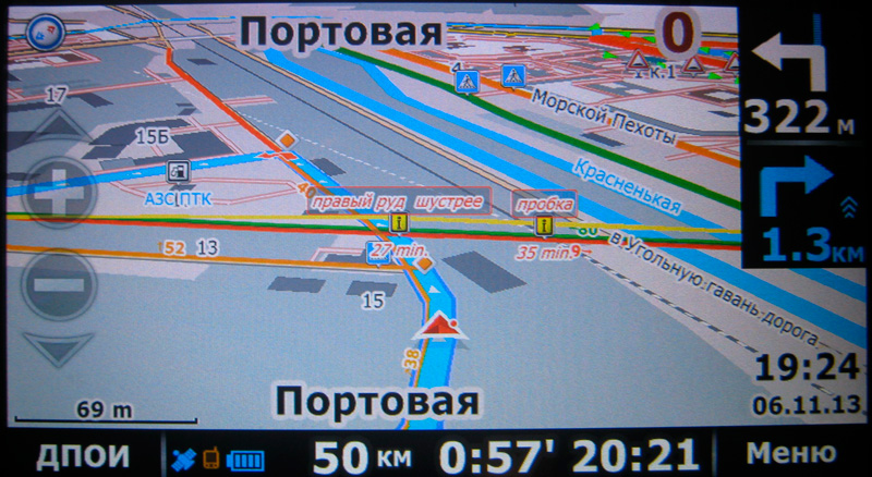 Не надо делать ничего — ставить держалку смартфона, подсоединять питание, включать GPS и GPRS, загружать программу навигации, сел и поехал! Мечта! От включения до режима полной готовности менее минуты, сама навигация грузится полминуты, ну и голова чуть меньше.