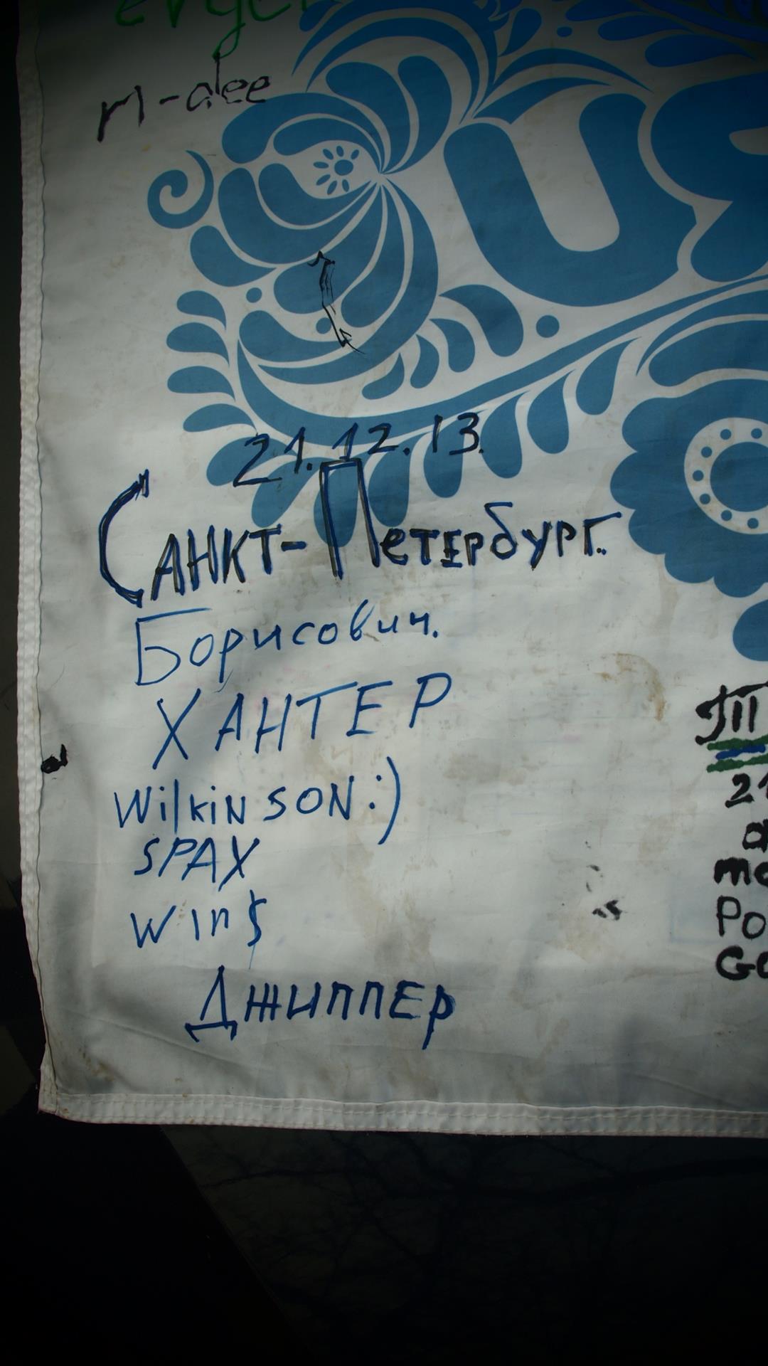Запечатлели момент передачи флага от меня Джипперу, а также процесс написания автографов на флаге."