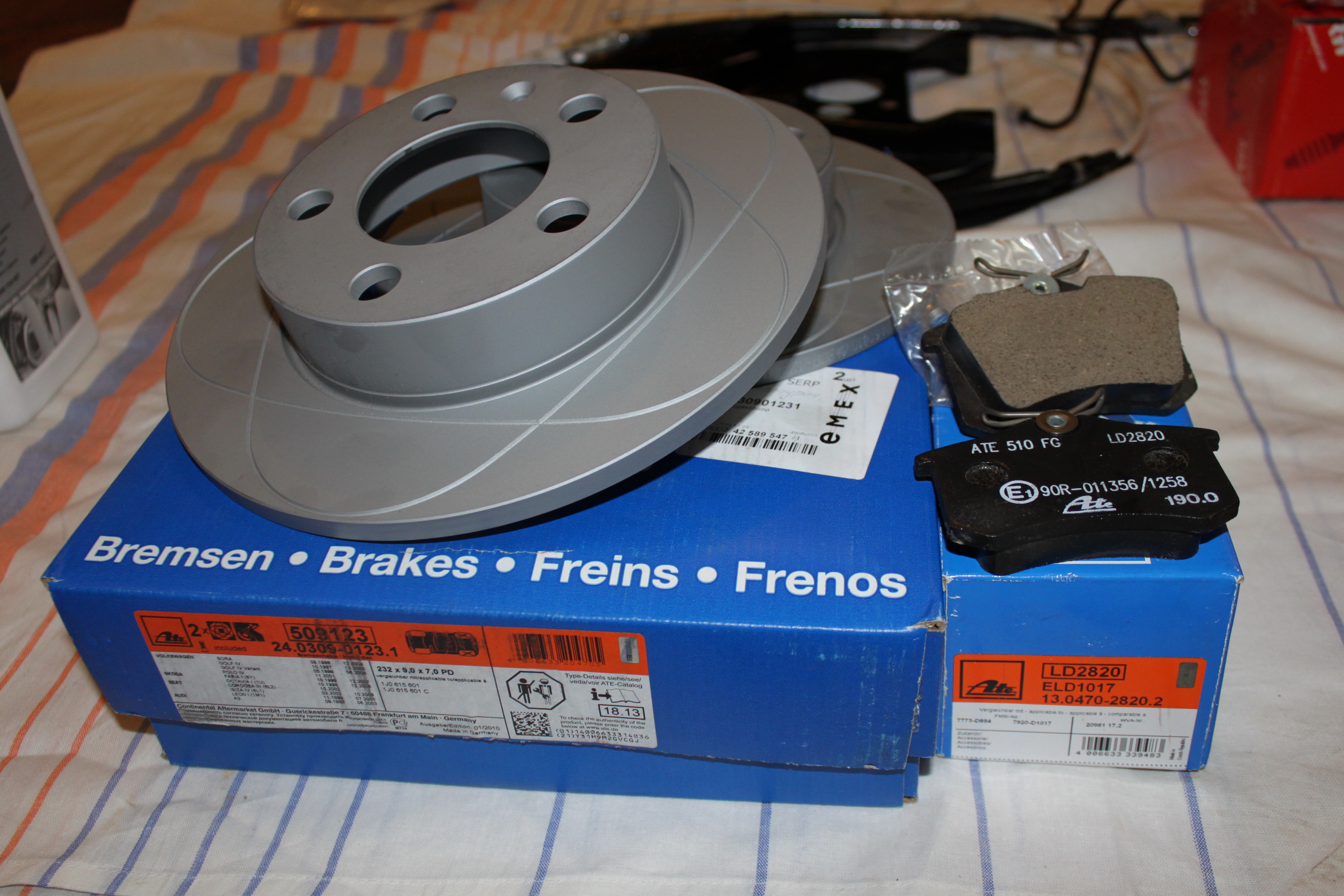 И так. Для установки задних дисковых тормозов нам понадобится комплект от VW Golf4.