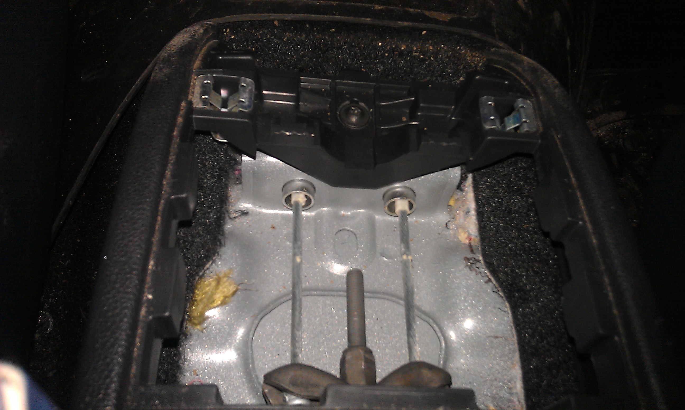 Концы тросов, которые идут в салон, заводятся туда по направляющим трубкам. Один конец выходит в салоне из тоннеля:
