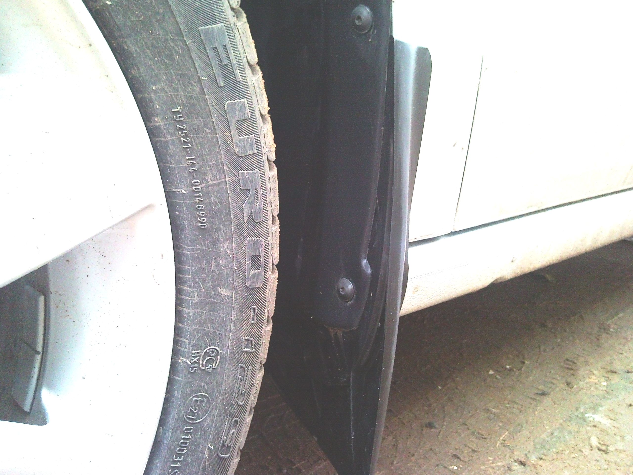 П.С. На предыдущей машине не было брызговиков - итог - на передних дверях множество черных точек от гудрона. Что-то на белом авто мне не захотелось иметь такое безобразие.