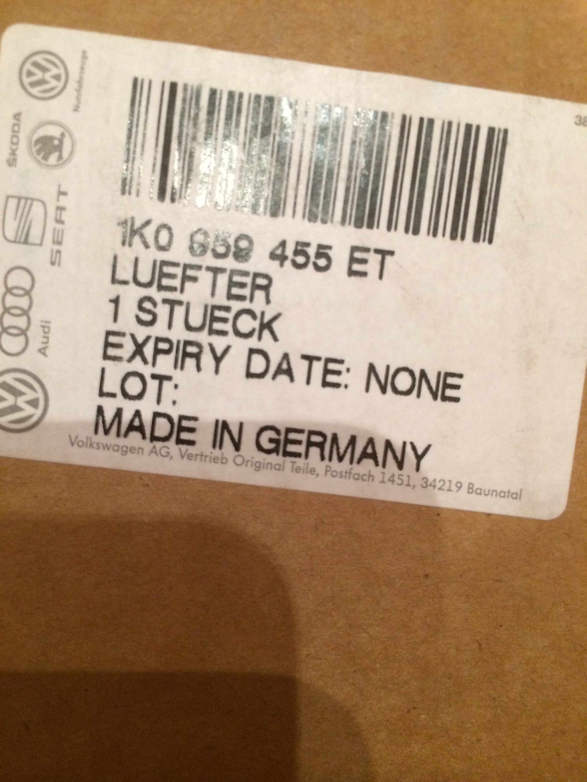 вентилятор радиатора 1K0959455ET