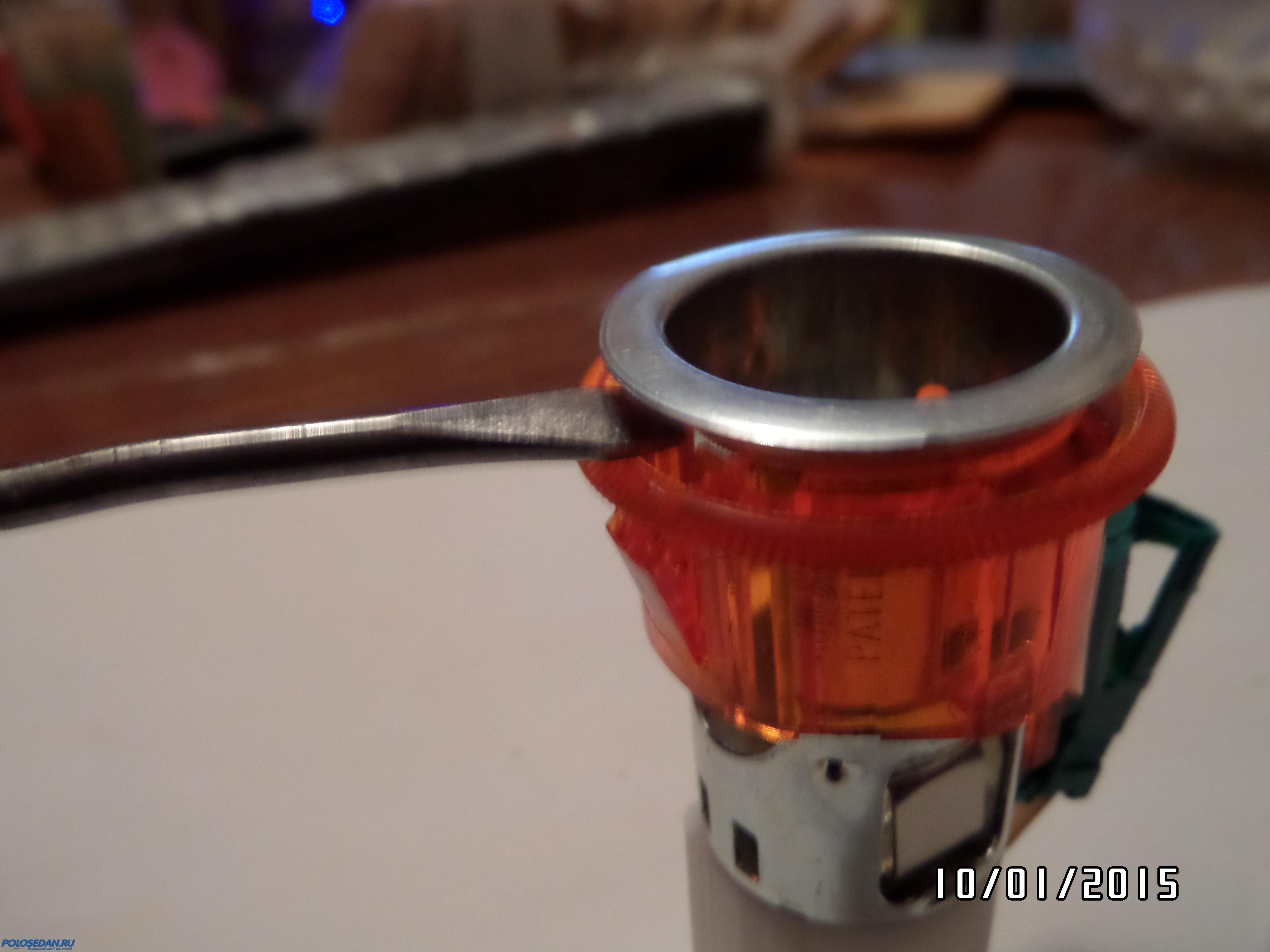 Остальное дело техники.Далее выше уже всё описано.Единственное,с чем помучался немного,это как добраться до лампочки.Отстегнуть пластмасску отвёрткой нужно вот так