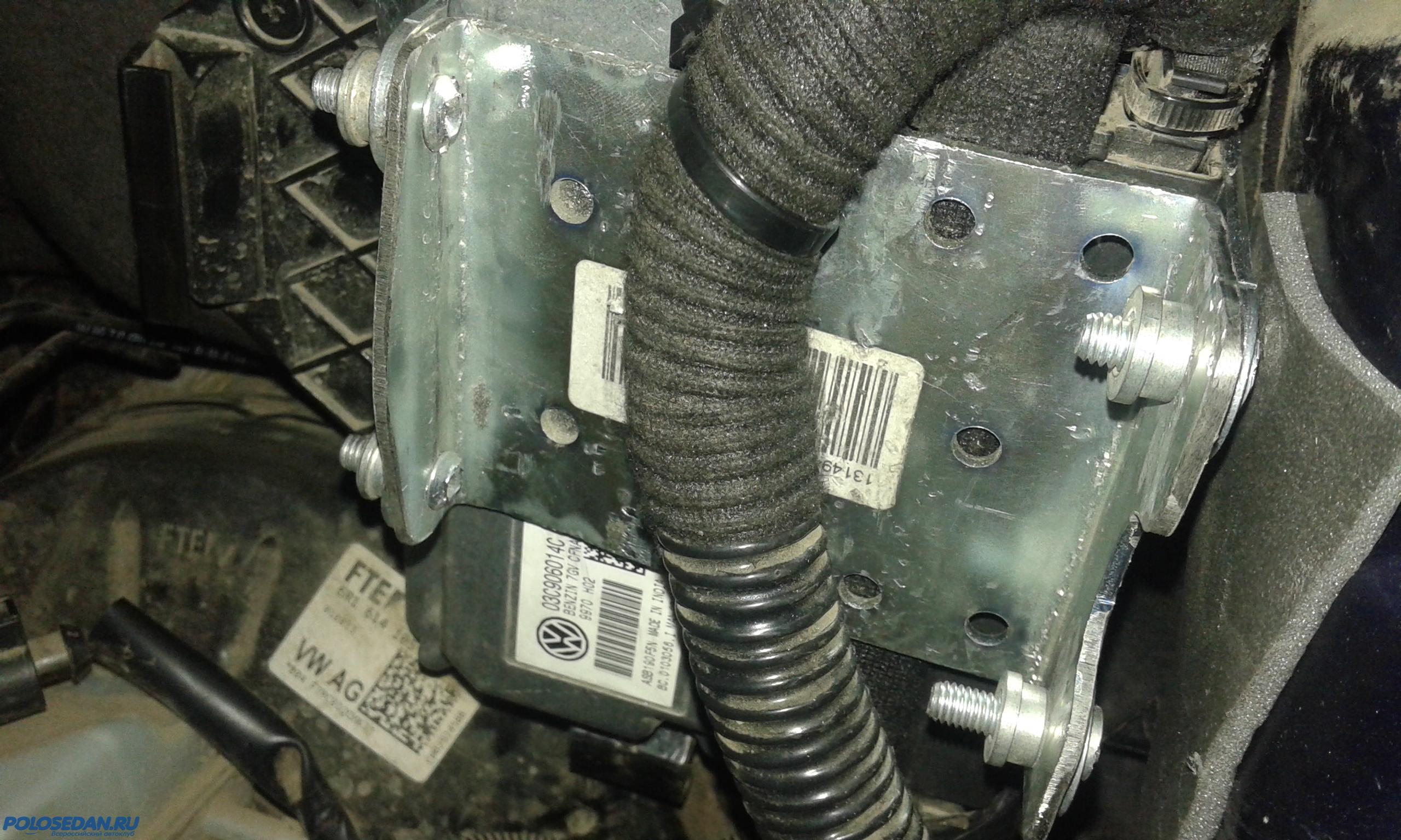 Подобная защита стоит на Поло штатно. В любом случае стоит скоба со срывными болтами. Откручивать их это еще то "удовольствие". Если у Вас ее нет, то знати ЭБУ снимался с машины, скоба не была назад установлена. Сдклайте фото и выложите в тему, дабы живьем увидеть что у Вас твориься под капотом