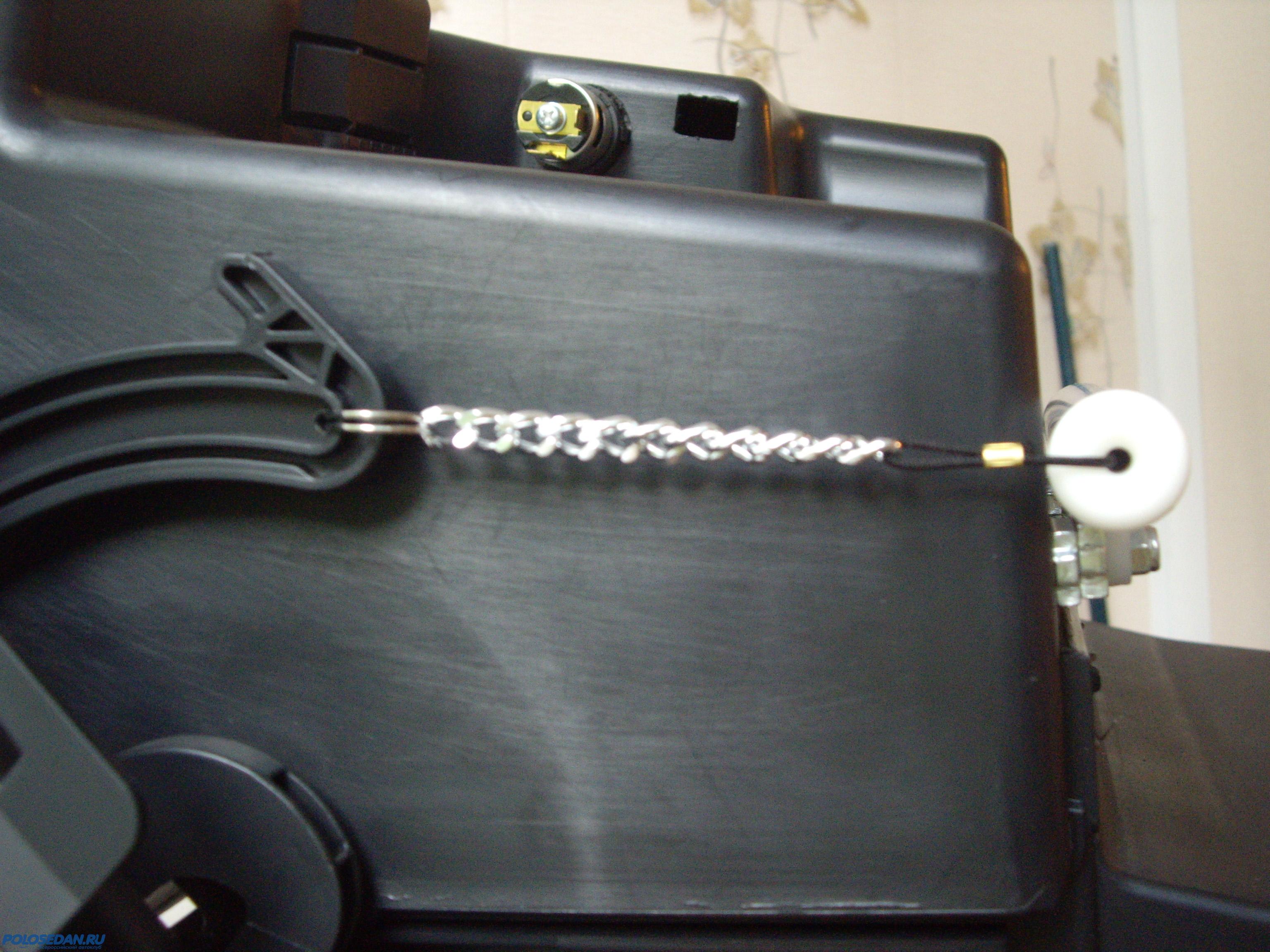 Далее вставил в направляющую колечко (я использовал кольцо для ключей) и подобрал по длине металлическую цепочку