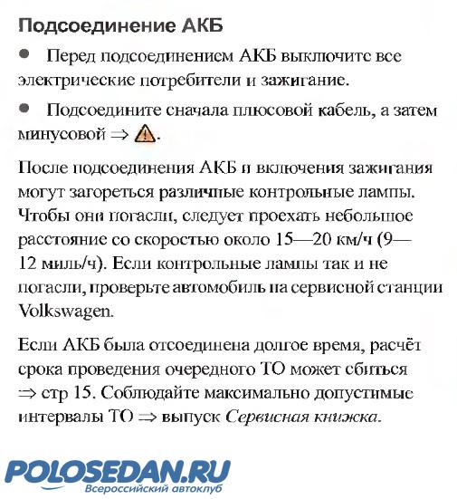 Аккумулятор в VW Polo седан