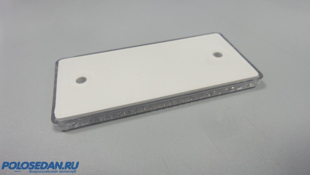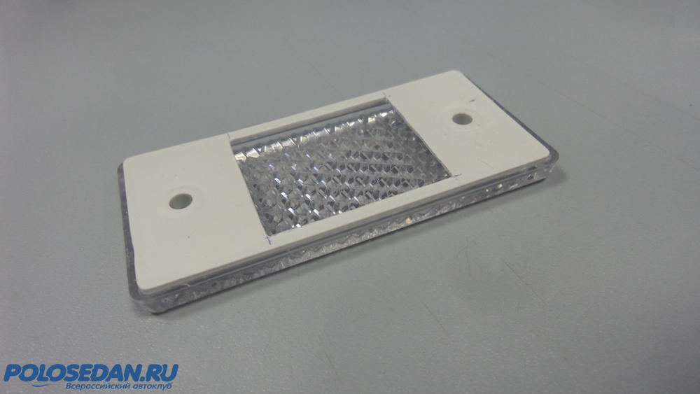 Посмотрев имеющиеся в продаже универсальные плафоны и плафоны от разных авто, убедился, что у всех них главная проблема - значительная высота. Смотрятся они на потолке вследствие этого - неважнецки...Грубо. В итоге купил... катафот :) От какого-то грузовика, вроде.... Совершенно плоский, высотой 5 мм. Смотрится хорошо. В нем прекрасно поместилась светодиодная панелька на алюминиевой плате.
