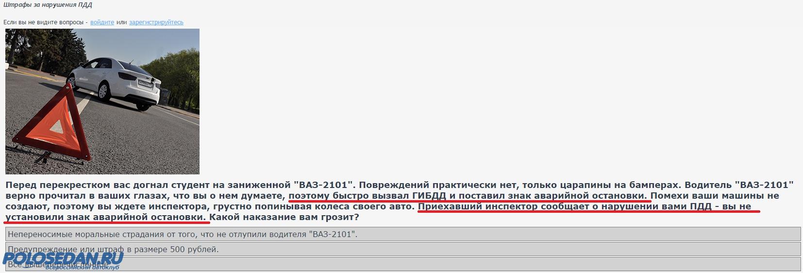 Косяк в последнем в условиях последнего вопроса (см. вложение). Взаимоисключающие параграфы налицо. Правильный ответ - ничего вам не грозит, если конечно водитель ВАЗ-2101 правильно установил знак - не менее 15 м в от транспортного средства в населенном пункте.