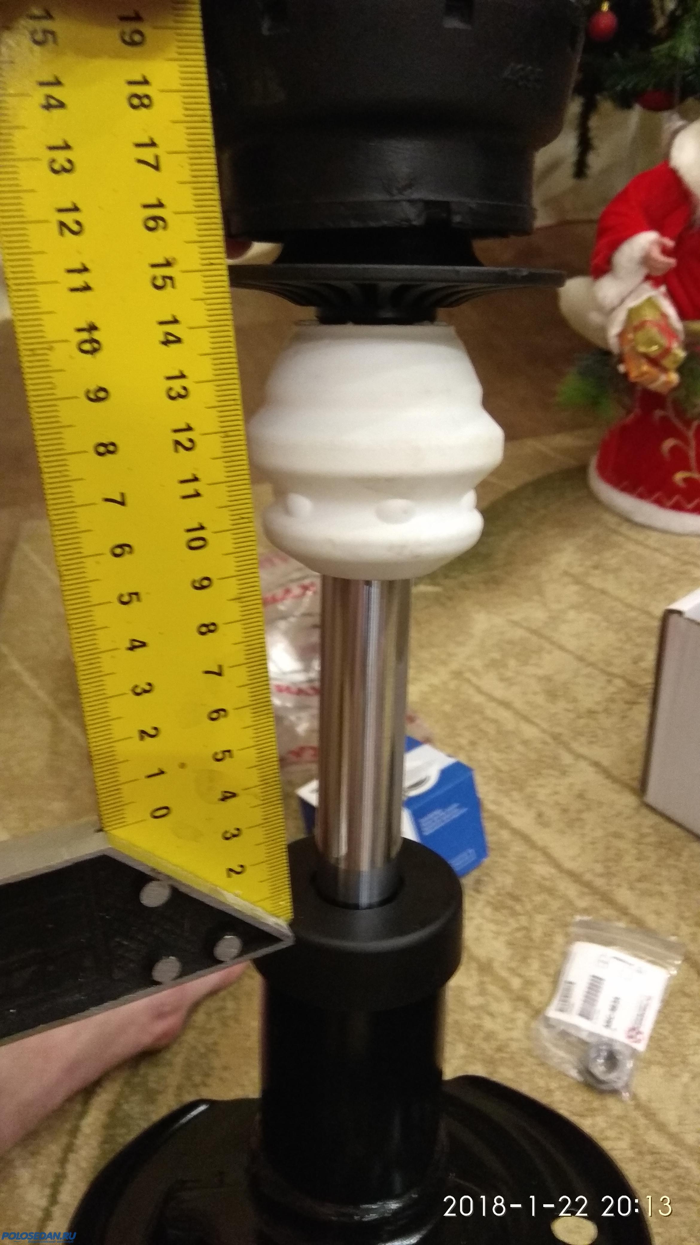 Высоты всех опор заменителей оригинала одинаковы, при замене опор мерить, насколько приподнялась машина некорректно, т.к. новые опоры еще не до конца "сели" в опорные чашки кузова. Если при "перетряхивании" передней подвески были заменены еще и опоры, то после замены необходимо сделать пробную поездку, после чего производить измерения. Я по своей дурости при стуках спереди заменил как-то только опоры, не до конца разобравшись, как они работают - итого потерял деньги и время, т.к. их замена ничего не дала. Опора в нашем случае - почти "вечная" и пройдет очень много км, пока резина не покроется трещинами и не рассохнется. На первом фото под спойлером - высоты новых опор (лемфердер, справа) и оригинальных опор, "проходивших" примерно 70-80 тыс. км (слева) - визуальна видна разница по высоте миллиметров в 5-8. Так вот, когда я менял всю свою старую подвеску на подвеску от поло GT в сборе, я сравнил свои недавно замененные опоры лемфердер (которые прошли всего 23-33 тыс. км) со старыми, прошедшими 70-80 тыс. - по высоте они были одинаковы, т.е. опоры лемфердер за пробег в 23-33 тыс. км уменьшились по высоте ровно на столько же, насколько и "старый", отходивший 70-80 тыс. оригинал. Я уверен, что после первой же тысячи км пробега на новых опорах расстояние по высоте будет аналогичным.