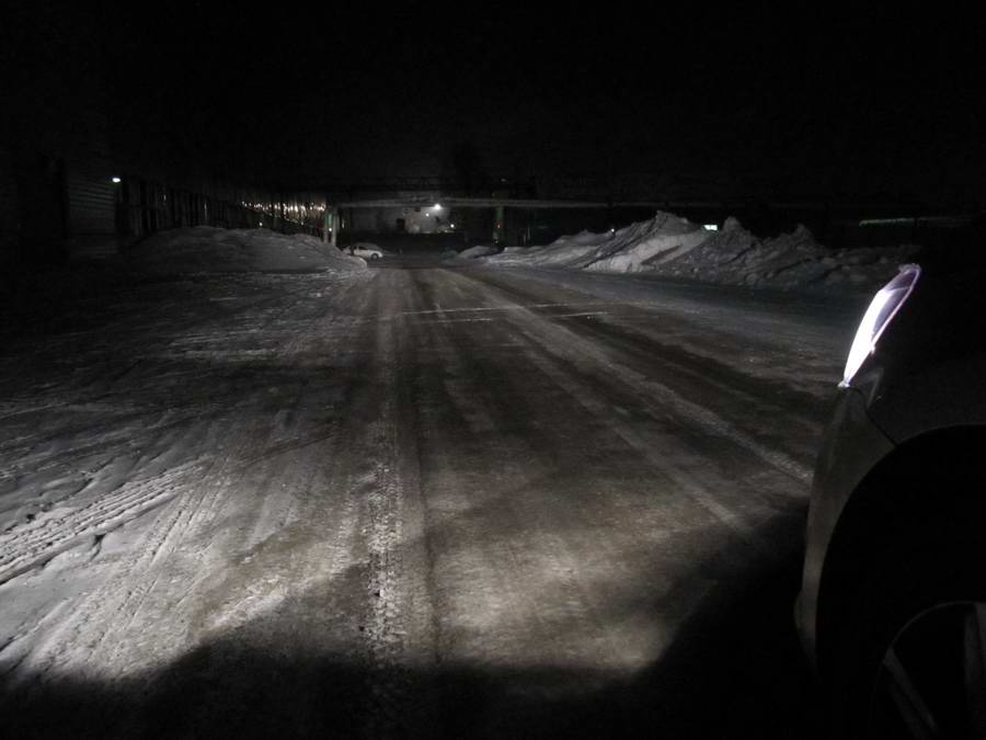 На фото: Расстояние до белой машинки ~100 м. На горизонте (~300 м) светит фонарь. До гаражных ворот 5 м. Все фотки подписаны. №6-8 с водительского сиденья - атермальное лобовое ворует 20%.
