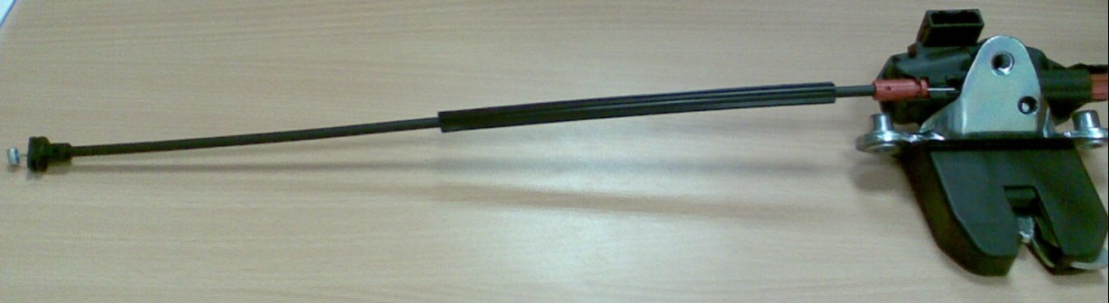 Теперь немного информации о замке. Замок на картинках как отдельно так и вместе с тросиком идущим к личинке багажника. Если Вы совсем осмелитесь и снимете защиту с крышки багажника, то увидите там замок с подлюченным к нему разъемом и тросиком. Отключив разъем, лампочка подсветки должна погаснуть, потому что концевик в замке работает на размыкание. Прозвонить концевик в замке можно обычным мультиметром. Когда замок открыт, между собой должны "звониться" пины 2 и 4; когда закрыт то между ними бесконечное сопротивление.
