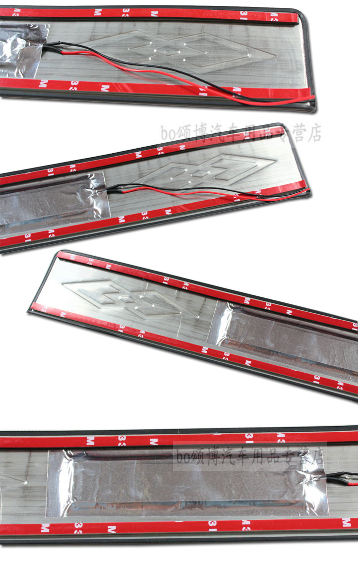 Интересные накладки на пороги с подсветкой из нержавейки.