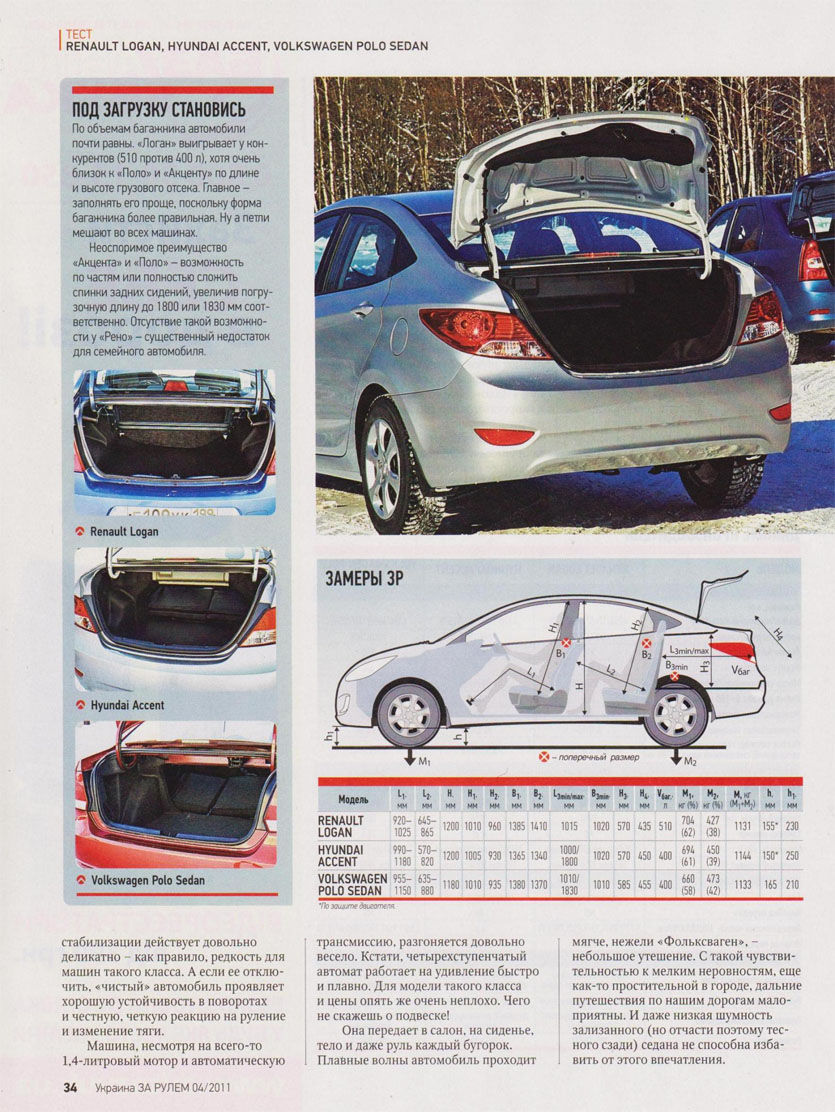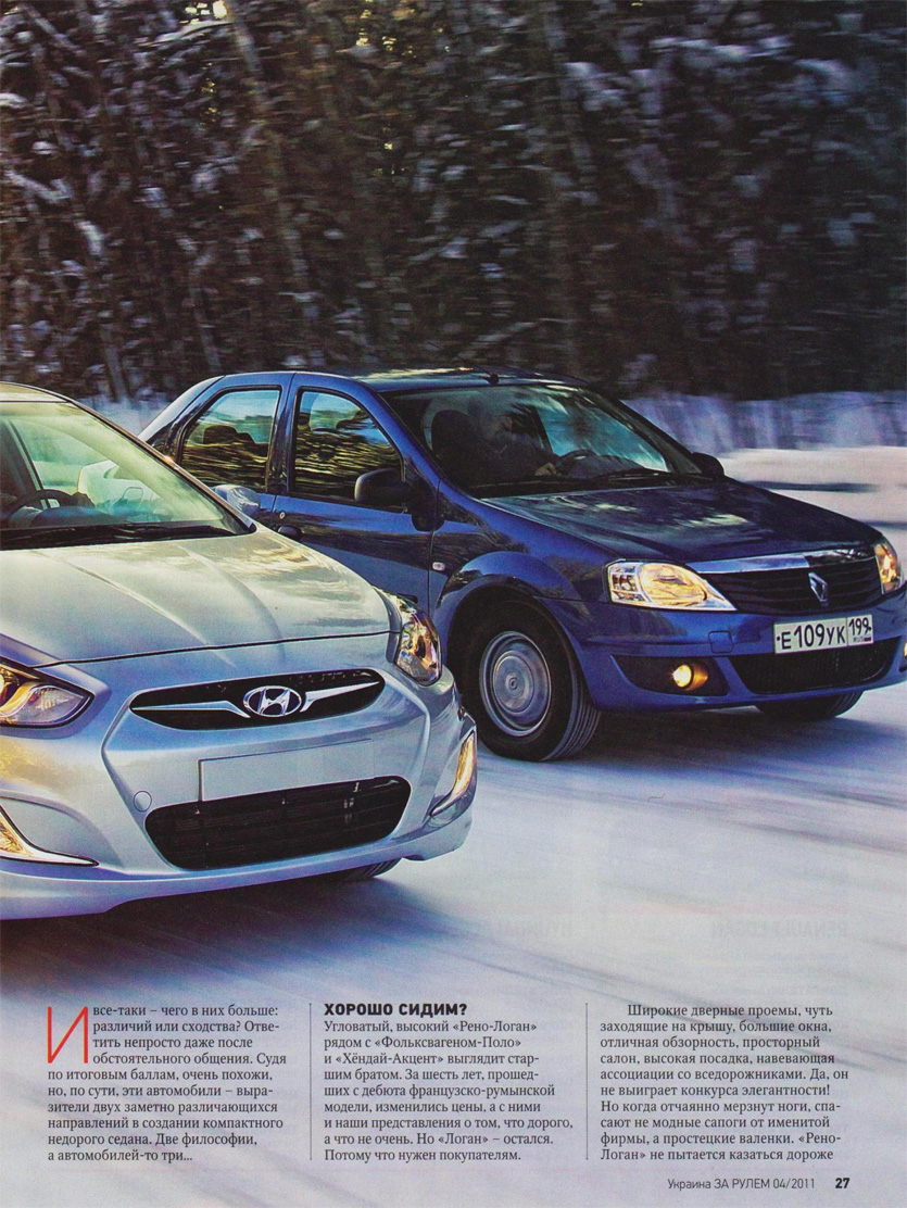 Как и обещал выкладываю статью из журнала За Рулем(это скан с украинской версии журнала, которая сейчас доступна для стачивания в сети). Замечу сразу, в журнале За Рулем Украина, Хёндай Солярис, стал Хёндай Акцент. И во всей статье он так и именуется.