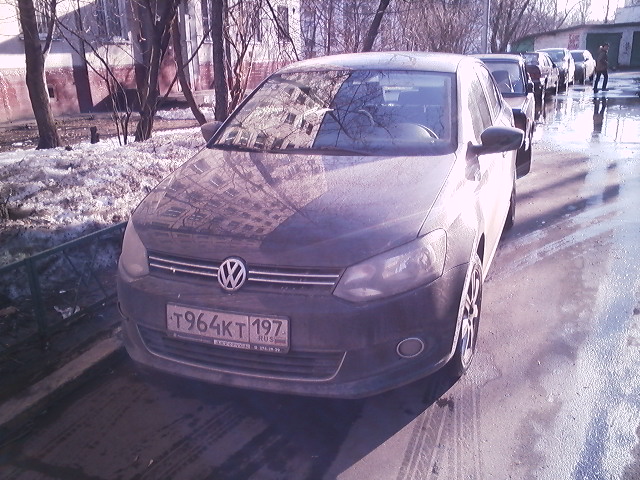 Кстати, по диагонали за машиной стоит Нексия, там чувак в очках пытался припарковаться и ткнулся задним бампером в правый угол сего автомобиля)) вышел тряпочкой протер себе и Поло))