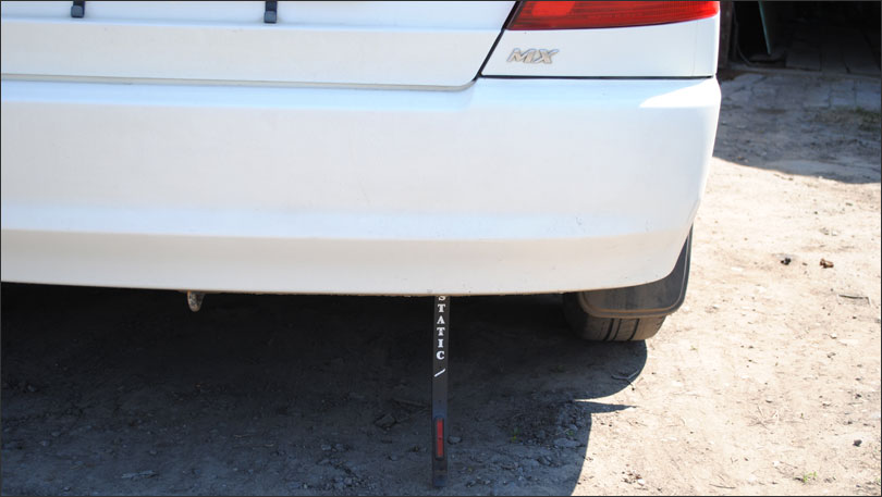Автомобильный антистатик продается практически в любом магазине. Свой я приобрел за 30 рублей. Антистатик представляет собой резиновую ленту с металлической проволокой внутри. Эта проволока уводит статическое электричество в землю. Крепить антистатик следует к любой металлической детали кузова автомобиля. Автомобильные антистатики бывают разной длины. Поэтому перед покупкой следует найти место для крепежа антистатической ленты и прикинуть ее длину (лента должна касаться земли).